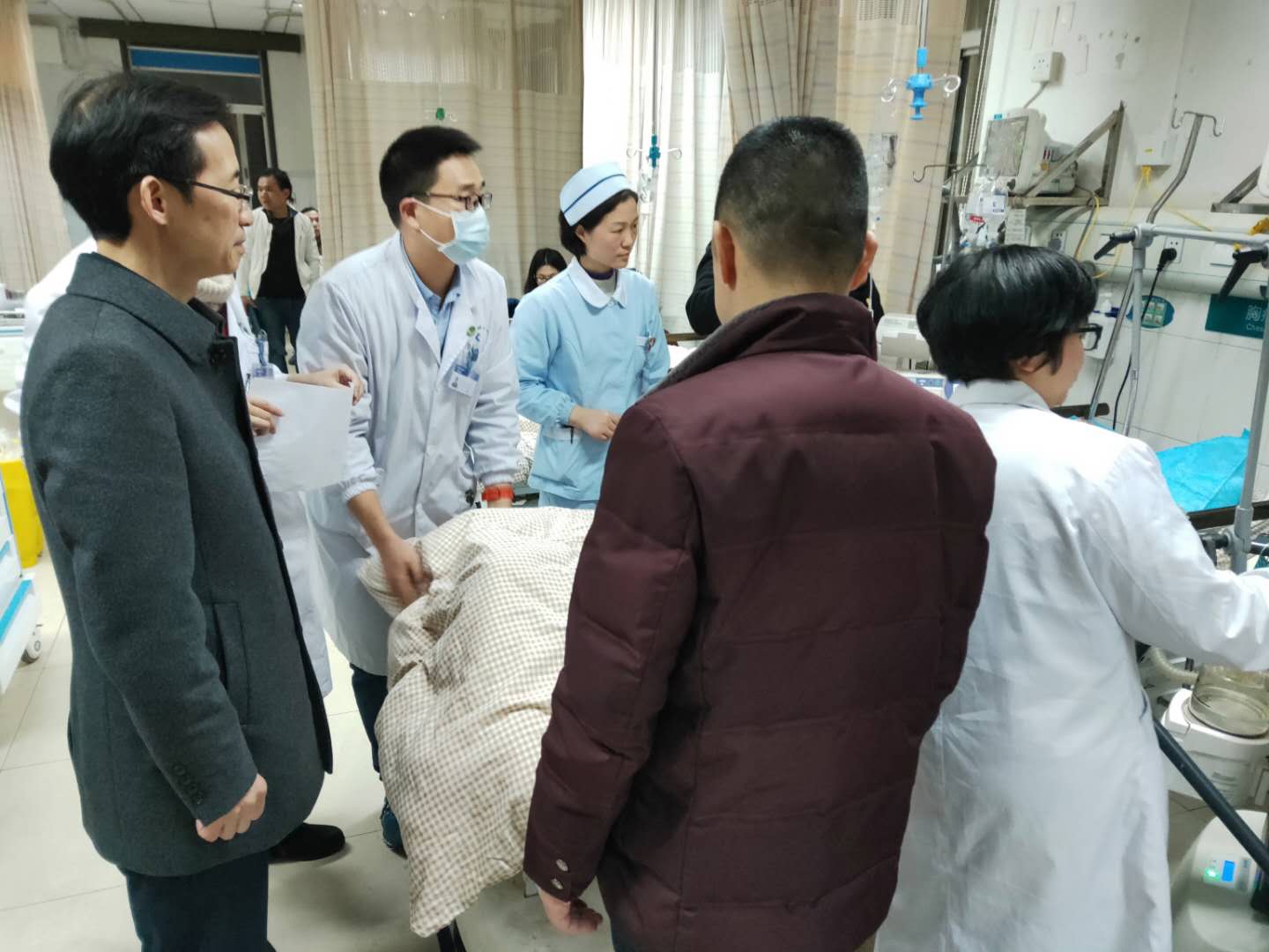 急诊抢救室众多的病人中,有两位病人病情极其危重,急需转入重症监护室(ICU)治疗。而ICU同样处于满员及超负荷状态,暂时没有床位供病人转入,情况万分紧急。医院党委委员、副院长欧阳文在得知这一情况后,第一时间亲自调度,医务部主任张翼、护理部主任严谨、重症医学科主任杨明施、毕业后医学教育部主任姚晨姣、医务部副主任刘作良等相关部门负责人迅速反应,在心胸外科金龙玉主任等临床医技科室的全力支持下,原本计划春节期间关闭的胸外ICU临时紧急开放。原本打算回家过年的医护人员毫不犹豫地退掉了回家的车票,在其他病房上班的医护人员把出班休息的时间无私奉献出来,就这样,在最短时间内临时组建起了以赵尚平医生为主的医护团队。在团队精心救治下,目前两位病人均已转危为安。
