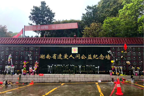 细雨中,捐献者家属、志愿者和医务人员怀着沉重的心情伫立在湖南省器官捐献纪念墙前,缅怀逝者、寄托哀思、表达敬意。