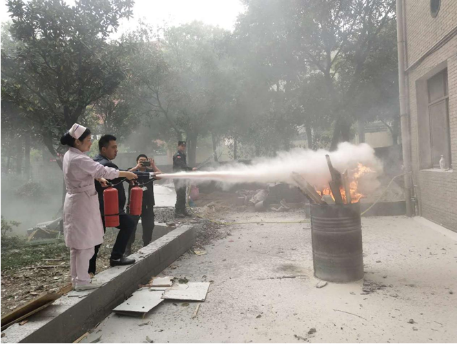 为进一步增强医院干部职工的消防意识,提高职工对院内火灾的应急扑救能力,4月23日下午3时,安全保卫部组织开展了灭火器使用实战演练培训活动。