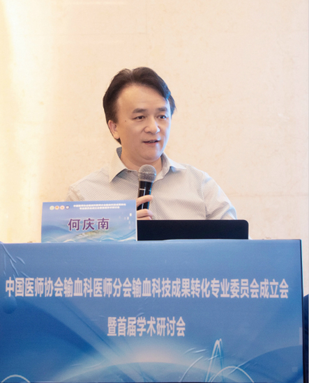首先,中南大学湘雅三医院何庆南书记对中国医师协会输血科医师分会的信任和支持表示由衷的感谢,对输血科技成果转化专业委员会的成立表示表示热烈的祝贺,对各位领导、专家、委员和参会代表们的到来表示热烈欢迎!
