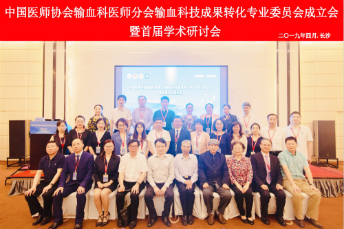 2019 年 4 月 27 日,中国医师协会输血科医师分会输血科技成果转化专委会成立大会暨首届学术研讨会在湖南长沙隆重召开。中国医师协会输血科医师分会会长、中华医学会临床输血学分会主任委员刘景汉教授,中国医师协会输血科医师分会副会长林园教授,湖南省输血协会易冬华理事长,湖南省医学会、湖南省医师协会朱建华秘书长,湖南省输血协会钟磊石秘书长,中南大学湘雅三医院党委书记何庆南教授出席开幕式。输血科技成果转化专业委员会委员、省内外输血界同行、输血行业研发企业代表等100 多人参加会议。大会是由中国医师协会输血科医师分会主办,中南大学湘雅三医院承办,中南大学湘雅三医院科研部主任曹科作主持。
