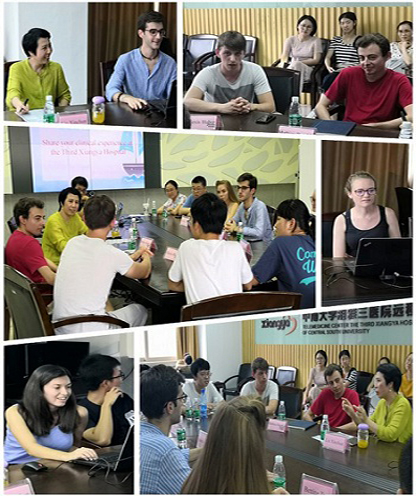 7月22日下午,湘雅三医院国际合作与交流办联合OTAS留学沙龙、湘雅医学院团委学生会在外科楼2楼远程会议室举办第十七期“圆桌漫谈/Round Table Chats”,来自法国卡昂大学、法国桑特圣西蒙科技大学、法国马赛医学院、西班牙巴塞罗那大学、匈牙利森梅威斯大学、挪威科技大学的6名IFMSA国际交换医学生,以及湘雅医学院学生约20余人参加。活动由国际合作与交流办主任刘新春主持。