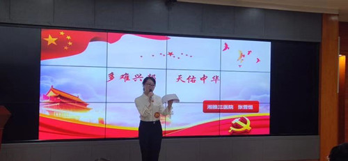 张雪恒以《多难兴邦,天佑中华》为题,从亲身经历的5.12汶川大地震开始,声情并茂地讲述了中国共产党带领四川灾区人民抗震救灾、重建家园、振兴发展的感人历程,抒发了自己爱党、爱国、爱校、爱院之情。她真情流露、极具感染力的演讲引得现场评委及观众纷纷落泪,以9.63分的成绩遥遥领先其他参赛者,成功斩获一等奖。营养科王萌以《我是谁》为题,从多维度思考:一名中国人,热爱祖国;一名共产党员,热爱党及共产主义事业;一名医务工作者,要继承前辈优良传统,扎实学习,认真工作,努力为人民群众提供更优质的医疗服务。王萌的演讲比赛经验丰富,表现力很强,最终荣获三等奖。