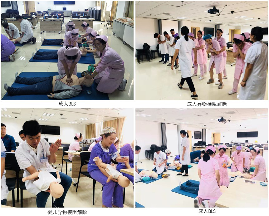 医院应急护士队伍由护理部组建,对接医院急危重症中心和卒中、胸痛、创伤、危重孕产妇、危重新生儿救治等五个中心,是医院应对突发事件的基础。BLS培训从急救培训最基本的项目着手,指导学员学习针对不同年龄心脏骤停患者实施基础生命支持的知识和技能,包括胸外按压、人工呼吸、AED 使用和异物梗阻解除。由AHA授权的6位导师按照AHA课程标准授课,学员们通过观看视频、分析讨论、实践演练等多种方式进行学习,更新了知识,规范了技术,并完成3项考核,获益良多。