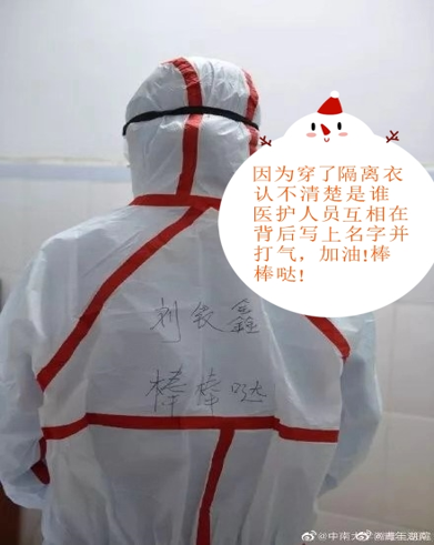 图片中的背影是多么的熟悉而温暖,即使没有写上你的名字,我也能一眼将你认出。“老婆,我想抱抱你!”每当我看到朋友圈里转发你这娇小的背影,我都想抱抱你,和你并肩作战,和你战斗在最前线。但是我知道我不能,因为我相信长情的告白便是此时的我也同你一样坚守在自己的岗位上。重症监护室的工作让我常常忙碌到忘记吃饭,忘记休息,更忘记提醒你要保护好自己……我甚至不愿意和别人说起你防护服背后的故事,因为每说起一次,都让我想起你的柔弱,而今天,只能让背后的“棒棒哒”陪我来给你打气。