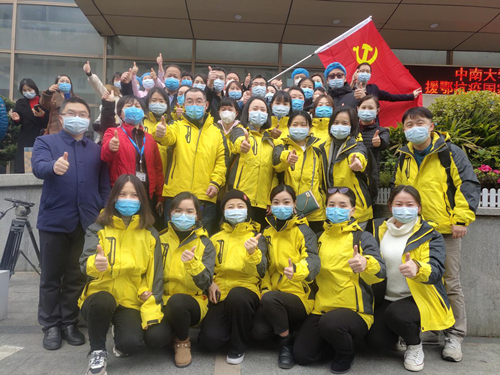 2月8日,元宵节,但今天对于湘雅三医院人家属来说是一个特别的日子——是送我们的勇者们去前线抗疫,保家卫国的日子。第四党总支作为其中的一份子,一接到医院发出的组建130人医疗队伍北上援鄂的号召,大家积极响应纷纷报名,最后万齐全副教授、护士长刘佳主任护师等16名队员荣幸的加入了医院援鄂的对伍中,成员来自于器官移植外科支部7人、胃肠外科支部4人、肝胆胰乳甲外科支部3人、消化营养支部2人,其中医生2名,护士14名。他们都是科室的中流砥柱,有的已为人父母,还有的正准备结婚的准新人。