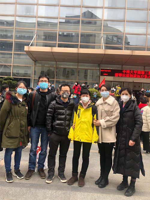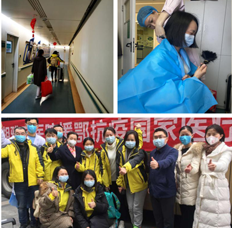移植外科支部有7名勇者,分别是万齐全副教授,张盛主治医师、主任护师刘佳护士长、王琰主管护师、周玲主管护师、曾瑜护师、郝琳护师。万齐全副教授与张盛主治医师是我们支部支援的唯有的2名医生。主任护师刘佳护士长是移植科的大家长,有着丰富的救灾和重症护理经验。2008年曾参与汶川地震救治工作,这次新冠疫情当前,她将两个年幼的孩子留守在家,第一时间请战带队出征。郝琳作为科室的小妹妹,当护士长在群里发出支援武汉征集通知的时候,她第一个站了出来,她说我单身,父母身体好,家里也支持,无后顾之忧。她说的潇洒,其实我们都知道,哪个孩子不是父母的掌上明珠呢!