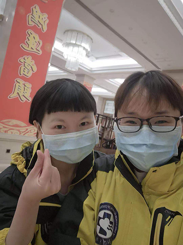 到达武汉已是傍晚,在媛媛老师的带领下,大家齐心协力分发了日常物资,大家都已有些倦意。我原本就是短发,为了更好地做防护,亚琪老师还是贴心的建议我剪掉刘海,于是,贴心的小姐姐就充当了我的Tony老师,小姐姐的处女秀还是蛮酷的。直到深夜12点才躺下,发现微信的未读消息有几百条了,很多亲戚朋友都没来得及告知,但他们不知从哪得来的消息,给我发了嘱托,那些说我回来要请我吃大餐,等着参加我婚礼的我可都一一记着呢!哈哈!