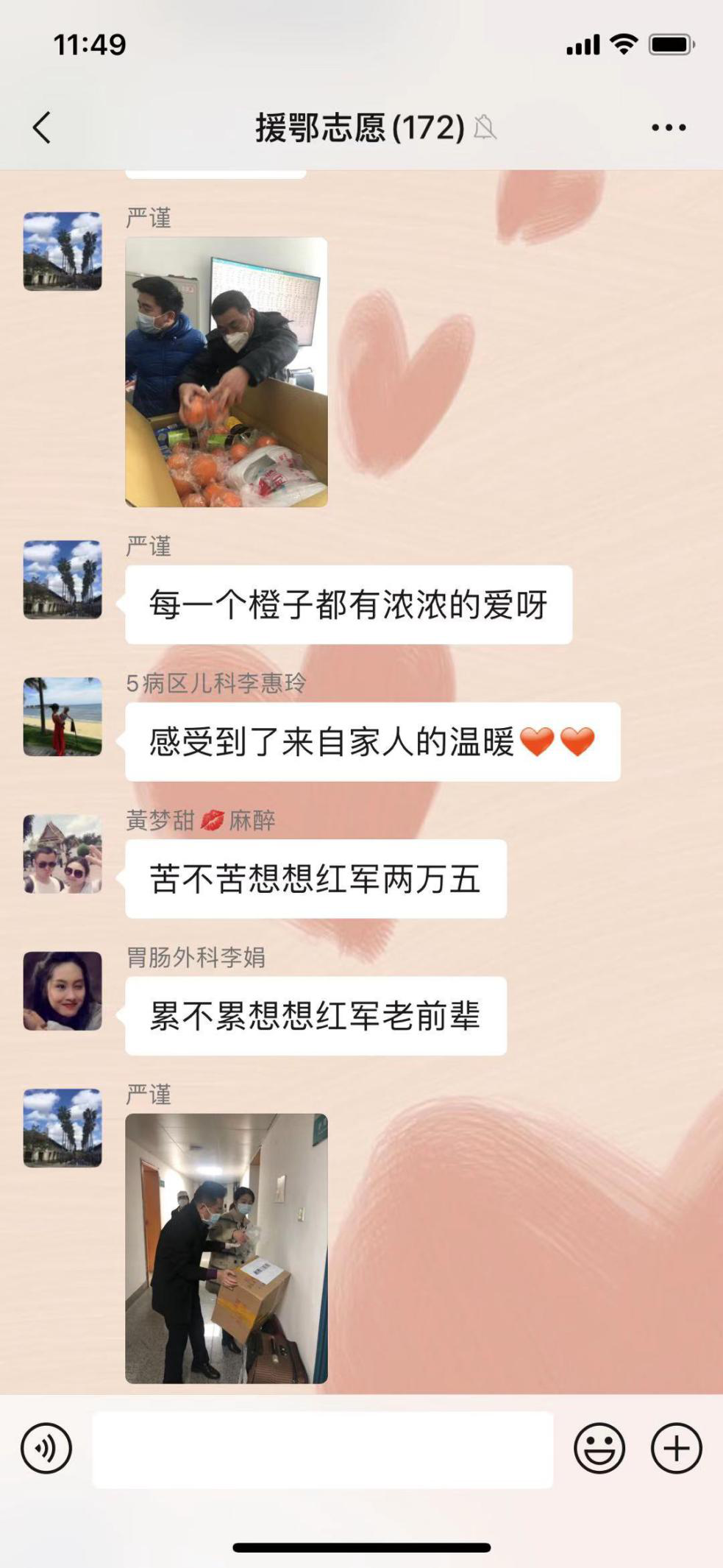 或许有的时候,人真的需要跳出来才能看清楚,来到武汉后我才知道自己是多么的幸运和幸福。我们院领导、科室领导,还有同事们知道我要奔赴前线,各种为我准备物资,药品、生活用品、食物、衣服……大家还不断地发信息给我,让我小心,也让我放心。还有老公,除了一再叮嘱我保重安全和默默的为我准备各种出征所需的物资以外,没有过多言语。同样作为一名湘雅人,他知道湘雅人的责任和使命,无需多言,放手去战斗吧!而他同样也在自己的岗位上战斗着。于是我集合了满满一科室和家庭关怀与爱出征了!