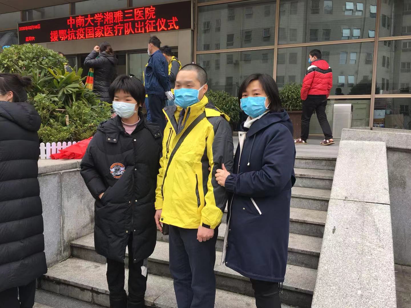 元宵节上午,我和妈妈帮爸爸整理行李:电热毯、尿不湿、一次性毛巾等,还有爸爸科室和妈妈科室同事为爸爸准备的各种应急东西(非常谢谢叔叔阿姨们的爱心,几乎什么东西都想到了)。之前我一直觉得新冠肺炎离我们很远,可现在,心里好慌:“老爸会不会被传染啊?”“防护服好不好啊?”“能保证安全吗”我胡思乱想,心情一刻不得平复,唉......阿弥陀佛,阿弥陀佛。元宵节中午老爸和他医院共130位同事就从医院出发了,送老爸出征现场,妈妈忍不住几次抽涕,我是个有泪不轻弹的女汉子,眼泪也一直在眼眶里打转……