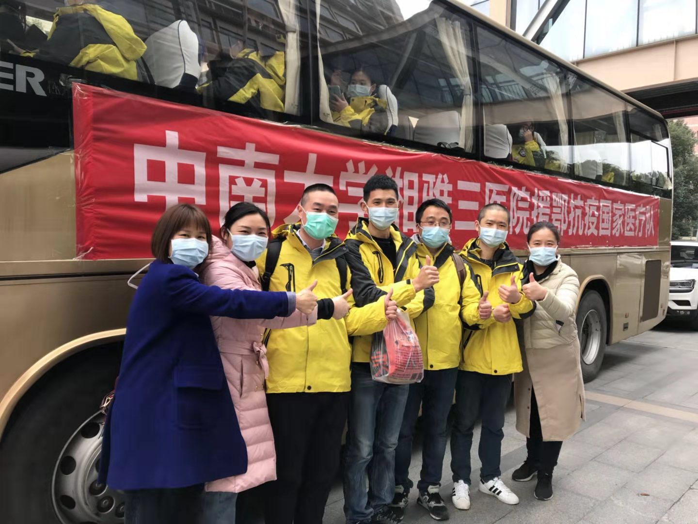 上了车一问才知道,原来不是我一个人没休息好,大家都说整晚睡眠很浅,时醒时睡或者无眠,不觉释然。都是血肉之躯,担心也人之常情,告诉自己放下包袱,勇敢前行。大巴车前面警车开道,走了城市快速路的我们25分钟就来到高铁站,跟附二院的老师们高歌一曲后登上了高铁。一上高铁护理部的钟老师和余老师就开始工作,进行人员的部署,对大家口罩佩戴的要领进行培训。让人更感动是动车上有位好心的先生,知道我们是去武汉支援的湘雅三医院医疗队后,给我们每个人赠送了水,饮料。虽然我没有拿那瓶水,可是眼泪也忍不住要掉下来,世界那么大,好心人那么多。
