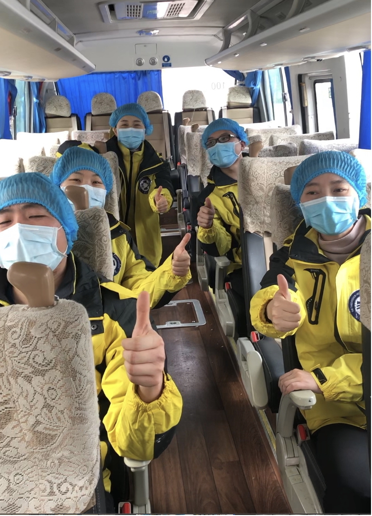 医院驰援武汉医疗队员顺利抵达武汉后,我们护理人员被分为6个小组,来自急诊科、神经外科ICU、ICU、泌尿外科等科室的15名护理人员组成第五护理小组,其中刘艳护士长作为组长。在刘艳的组织、带领下,我们第五护理小组所有成员拧成一股绳,团结一致,切切实实地完成了每一班临床护理任务。每次上班途中,她总会一遍又一遍地向大家强调防护要点,讲解护患沟通技巧,时刻提醒队员加强患者的心理护理,想患者所想,给患者所需。