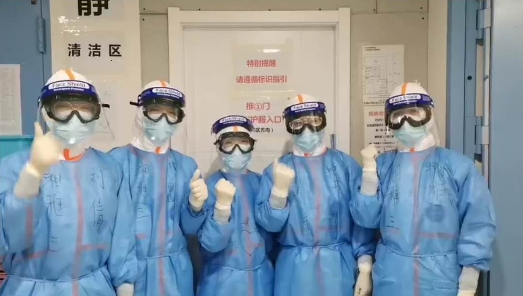 2月15日凌晨,护理6组的小伙伴6人组照常提前1小时出发上夜班,到达医院时,居然偶遇了刚刚下班的湘雅二医院团队,当时,我们内心无比激动,但我们只能远远地招手,默默地互相鼓劲。