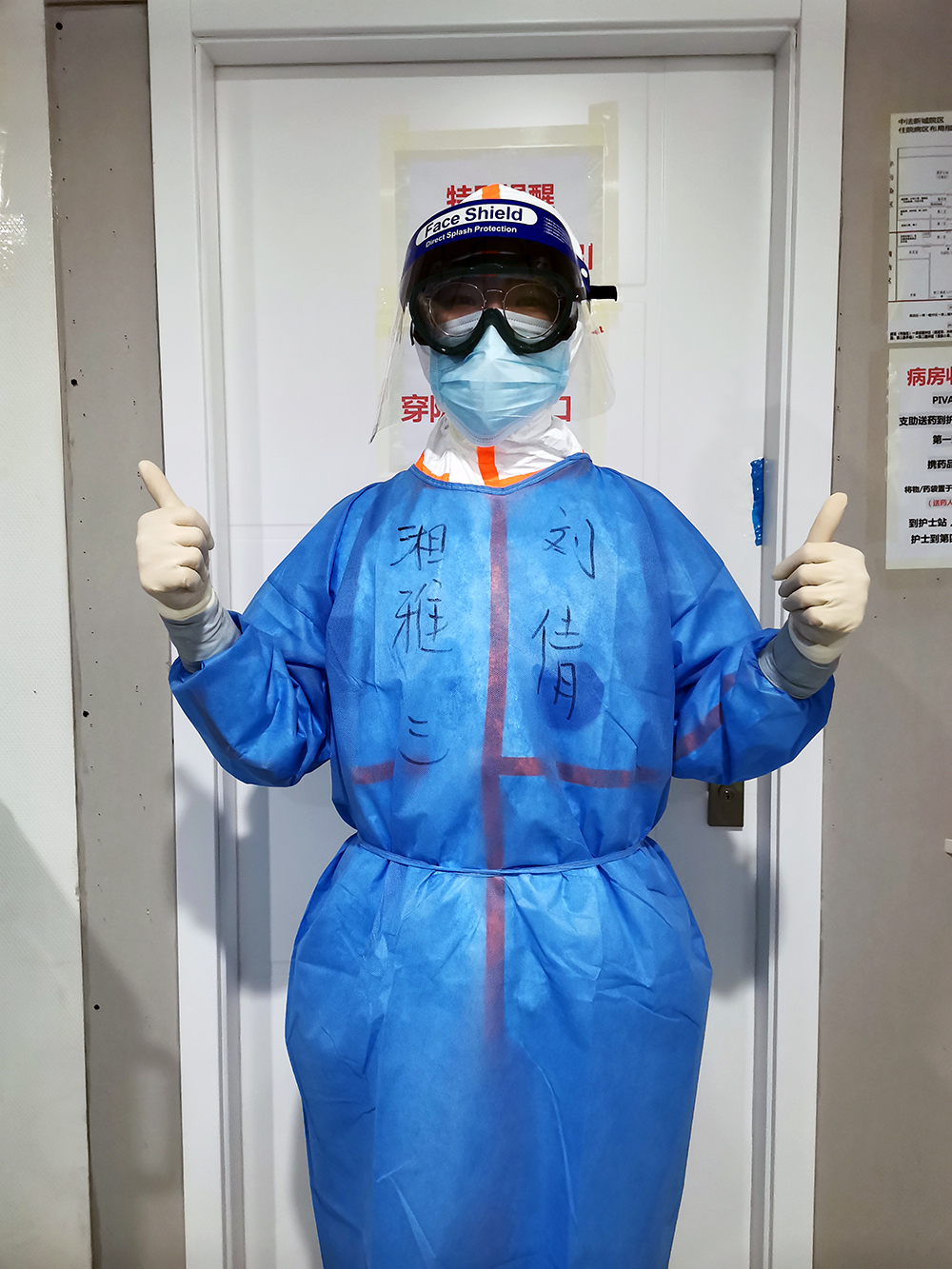 慢慢地,我们第六组开始融入到紧张有序的工作当中,上下班的路上大家互相鼓励。进出医院,穿脱防护服也是互相检查。印象最深的就是平常和蔼可亲的成湘红老师做起防控工作十分严格,每次给我们检查防护装备都会一丝不苟,一遍又一遍,生怕漏出一丝缝隙。还有我们的组长李守根老师,一个不拘小节的大老爷们儿,也会细心地给我们的护目镜涂洗手液,防止起雾,甚至费力地蹲身给我们一个个确认鞋套是不是绑紧。