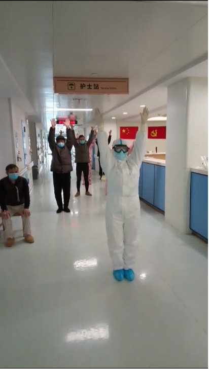 也许是病友出院的消息让他们看到了希望,也许是运动让大家增添了信心,他们都期待“教练们”教给他们更多有利于肺康复的动作,直到组员们一再提醒才停下来休息。为了让疫情早日得到控制,为了让患者早日幸福团圆,中南大学湘雅三医院的医护人员各施良策,多管齐下,共筑疫情防控的钢铁长城。