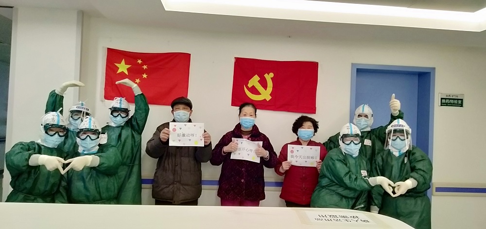 临别,我们和三位老人家合影留念,看着他们开心的笑容,为之付出一切的苦与累都是值得的,今天注定是开心的一天。我相信,在我们新湘雅团队的努力下,重症病房的每一位患者都会一天天好起来,我也相信在全国医护人员的努力下,定会战胜疫情!