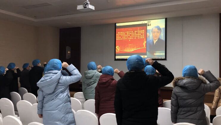 2月20日中南大学湘雅三医院援鄂国家医疗队驻地里的党员会议