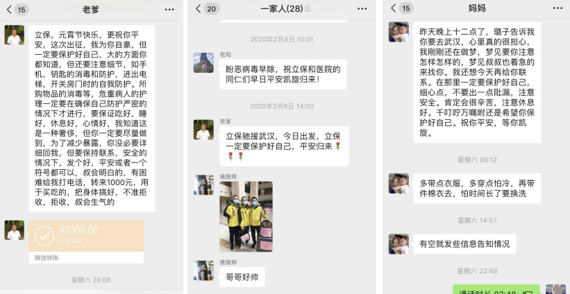 疫情爆发,他的心第一时间飞到了300公里外的武汉。他在大年三十毅然决然退掉回家的车票,在长沙待命,并作为医院抗击新冠病毒疫情的应急梯队成员提前接受了严格的培训与考核。2月7日晚得知组队消息,他知道,属于他的冲锋号已吹响。他如此坚决的决定,少不了家人在背后的支持。“他们都为我感到骄傲,但不担心是不可能的。”唐立业父母在其高中的时候不在了,叔叔婶婶一直关心照顾他,视如己出,在唐立业心里,他们就是爹妈,是亲人,是最想要守护的人。