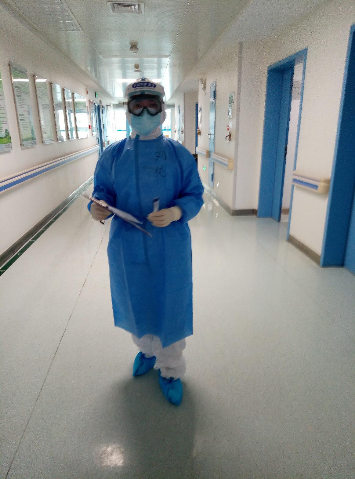 2月9日,接到当晚前往同济中法新城院区接管一个50张床位的重症病区的通知后,刘纯老师第一时间进入病房参与收治病人。由于在呼吸危重症领域经验丰富,刘老师被委任为病区主任。临时开创的新科室,陌生的“新冠病毒”,特殊的防护……这些都给救治工作增加了困难,好在,刘老师身经百战,很快就根据患者严重程度,做好了病区分组,实行分组责任制管理病人,病区工作很快进入正轨。作为病区主任,刘老师不仅要带领本组医生完成本组病人的救治工作,还要统筹全科的医疗工作。因此,她没有真正的“休息日”,哪里需要她,她就要出现在哪里,什么时候需要她,她就要第一时间赶到。每天她总是第一个进入病房查房,详细了解每个患者的情况及需求,遇到交流比较困难的患者,刘老师也从不糊弄,总是耐心、细致地与患者交谈,刘老师声音温柔,语速不快不慢,态度亲切,病房的患者都非常喜欢她,乐意向她倾诉,无形之间,也拉长了查房的时间,但刘老师从不抱怨,她总是说“患者愿意跟我们倾诉是好事,他们压力大,说出来可以舒缓情绪,对病情也有好处。”