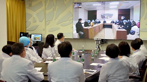 欧阳文副院长充分肯定了医院援助湖北医疗队救治工作取得的成绩,并对加强院内远程指导专家组与医疗队的沟通联系提出了要求。