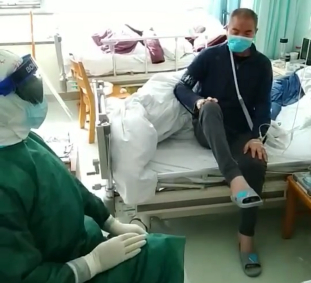 呼吸支持和肺康复是新冠肺炎患者最重要的治疗部分。身在新冠肺炎武汉战“疫”最前线,临时家属周玲、黄哲、陈思、吕凯琳、李慧琳、熊湉等结合工作实践和经验,针对不同程度的病患连夜整理出了一套行之有效的健康指导方案,包括轻症健康指导计划和重症健康指导计划。 为方便医护人员及患者深入理解方案内容,家属们将文字转化成动作并拍成宣教视频,让患者更直观地去锻炼肺部功能。为了让康复指导落实得更好,有重症经验的临时家属杨晓禹、曾礼、张晨总是会利用自己下班的时间指导患者做三位一体呼吸操。