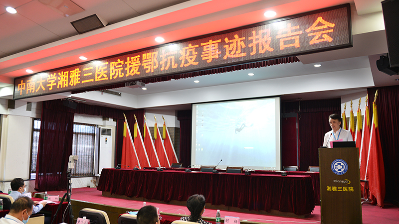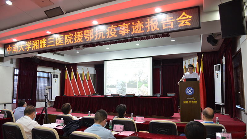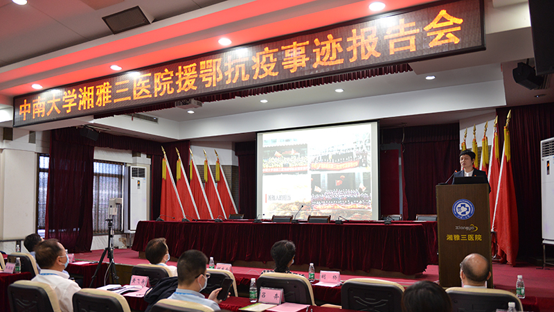 白衣执甲,载誉归来。为分享荣誉带来喜悦的同时,凝聚精神,砥砺前行,4月29日下午,中南大学湘雅三医院举办院内首场援鄂抗疫事迹报告会。中南大学党委常委、副校长陈翔,校党委宣传部部长胡杨出席,医院党委书记何庆南主持会议,援鄂医护人员陈志衡、钟竹青讲述援鄂抗疫事迹。