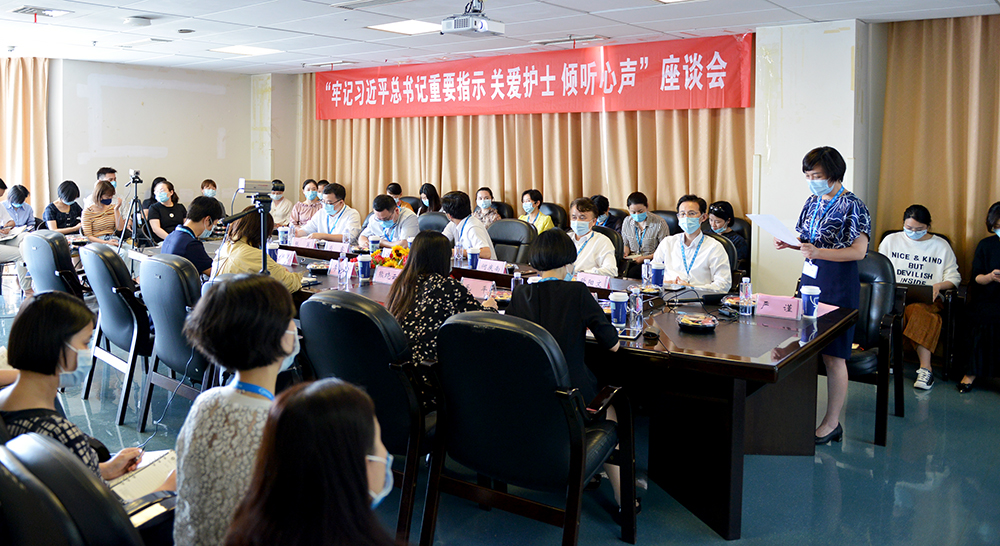 何庆南书记在表达护士节美好祝福的同时,为能倾听护士心声感到欣慰。他说,护士平时是卫士,疫情时是战士,习近平总书记的重要指示高度评价了护士在抗击新冠肺炎疫情一线的英勇行为,充分体现了党中央对广大护士的关心关爱,也为护理事业发展指明了方向,大家要深入学习领会,认真贯彻落实。他强调,护理工作是卫生健康事业的重要组成部分和基础,如何让护理专业赢得尊重,值得思考;如何体现护理价值,值得考量。他表示,医院历来重视和支持护理学科和人才队伍的建设,未来将继续广纳良言,落实举措,支持、推动护理学科发展。