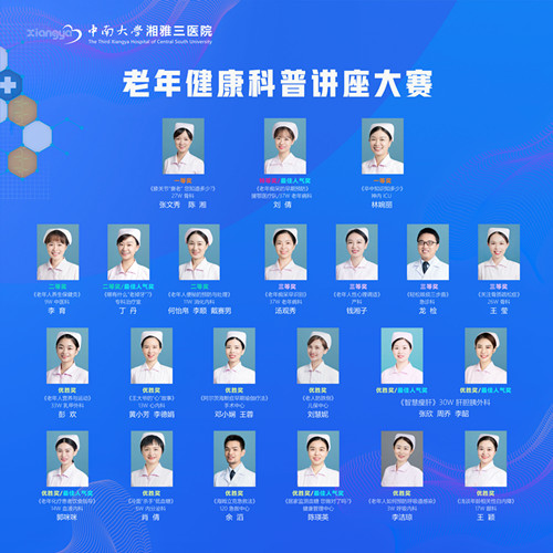 为聚焦老年健康科普需求,促进老年人护理健康知识水平提升,中南大学湘雅三医院护理部于今年3月份开始举办老年健康科普大赛。