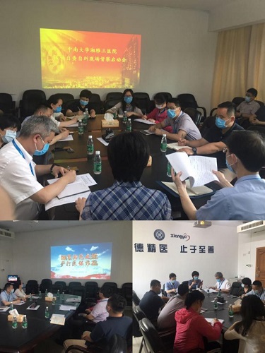 根据湖南省医疗保障局《关于在长部省属公立医院开展医保违法违规行为自查自纠工作的通知(湘医保函[2020]66号)》、长沙市医疗保障局《关于在全市定点医药机构开展欺诈骗保行为自查自纠的通知(长医保发[2020]20号)》的文件精神,以及《中南大学湘雅三医院2020年医保反欺诈自查自纠专项检查方案(院行字[2020]29号)》的安排部署,5月18日上午,湘雅三医院组织医保、医务、护理、医学装备、药学、信息、财务等相关职能部门召开会议,并成立了专项督查组,定于5月18日-20日在全院范围内开展医保反欺诈自查自纠专项督查工作。医院党委委员、副院长欧阳文,党委委员、总会计师汤英参加会议,并进行相关工作部署。