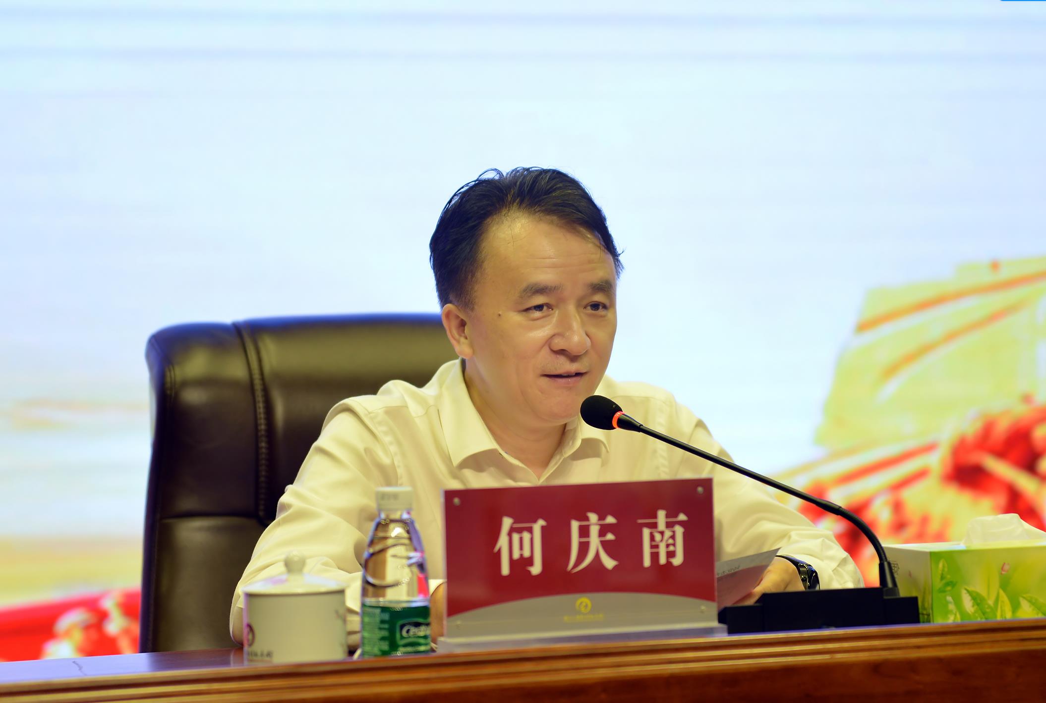 何庆南在讲话中指出,援鄂抗疫事迹报告会的目的是凝聚战疫力量,在未来的工作中做出更大的贡献。他简要介绍了湘雅三医院和援鄂国家医疗队的基本情况。他表示,湘雅三医院2月7日接到国家卫健委的指令,要组织130人医疗队支援武汉,医院20:30发出紧急号召令,1小时内300余名同志主动请缨。133名队员自2月8日逆行武汉,与当地医务工作者共同团结奋斗,以实际行动践行了初心和使命,为打赢全国疫情防控阻击战贡献了新湘雅力量,让党旗高高飘扬在抗疫一线。他强调,我们在毛主席家乡分享荣光,共话使命,更要学习韶山精神,坚定理想信念,不忘初心,继续为人类健康贡献新湘雅力量。