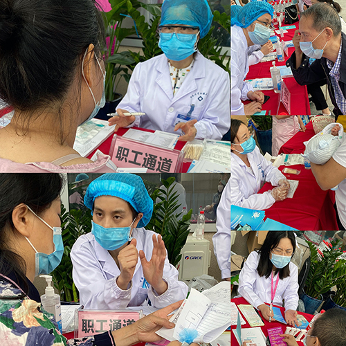 为引领大众从根本上对皮肤病规范治疗和科学护肤的关注和重视,杜绝“病从肤入”,活动当日,皮肤科主任兼医学美容中心主任鲁建云教授、副主任谭丽娜,皮肤与性病学教研室副主任曾庆海,博士郭爱元和王丹等数名皮肤科专家及医学美容中心医技护理人员组成义诊团队,为患友及一线医护人员在健康管理中心提供义诊咨询服务。