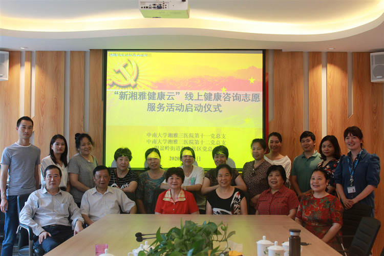 6月9日上午,中南大学湘雅三医院第十二党总支(离退休)、第十一党总支(学生)、林海社区党总支联席共建,在岳麓区银盆岭街道林海社区党员活动室,成立“新湘雅健康云”线上健康咨询服务平台,面向社区所辖60岁及以上居民、医院全体离退休人员及社区工作人员,开展线上健康服务,通过线上医疗咨询问诊、指导线下就诊,提供健康指导,引导正确就医。合作三方的党总支书记、博士生和居民代表约20人参加启动仪式。活动由林海社区党总支书记张娟主持。