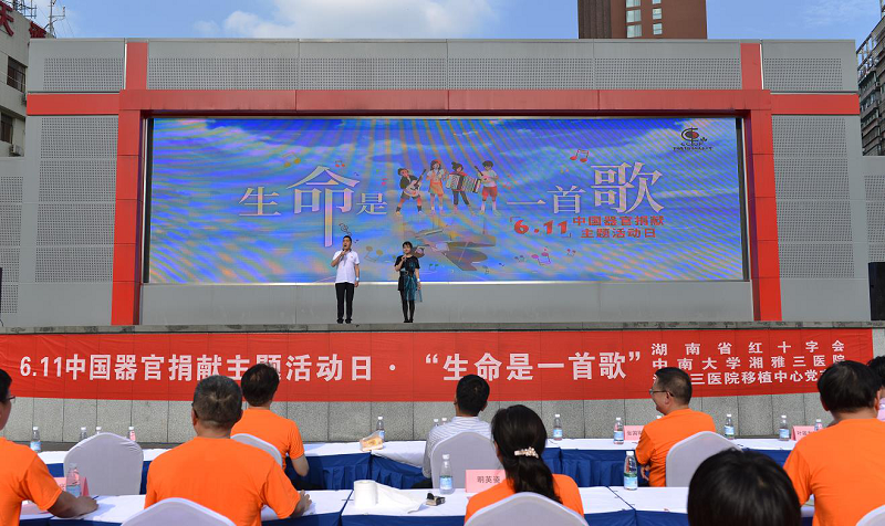 2020年6月11日是第四个“6.11中国器官捐献主题活动日”,中南大学湘雅三医院在湖南省卫健委和湖南省红十字会的指导下,发起了“生命是一首歌”为主题的公益宣传和专家义诊活动。湖南省红十字会会长陈丹萍、湖南省卫健委医政医管处处长王若平,湖南省红十字会器官捐献管理中心主任何一平,中南大学湘雅三医院党委书记何庆南,中南大学湘雅三医院院长张国刚,国家卫健委移植医学工程技术研究中心主任、武汉大学肝胆疾病研究院院长叶啟发等嘉宾出席了本次活动。
