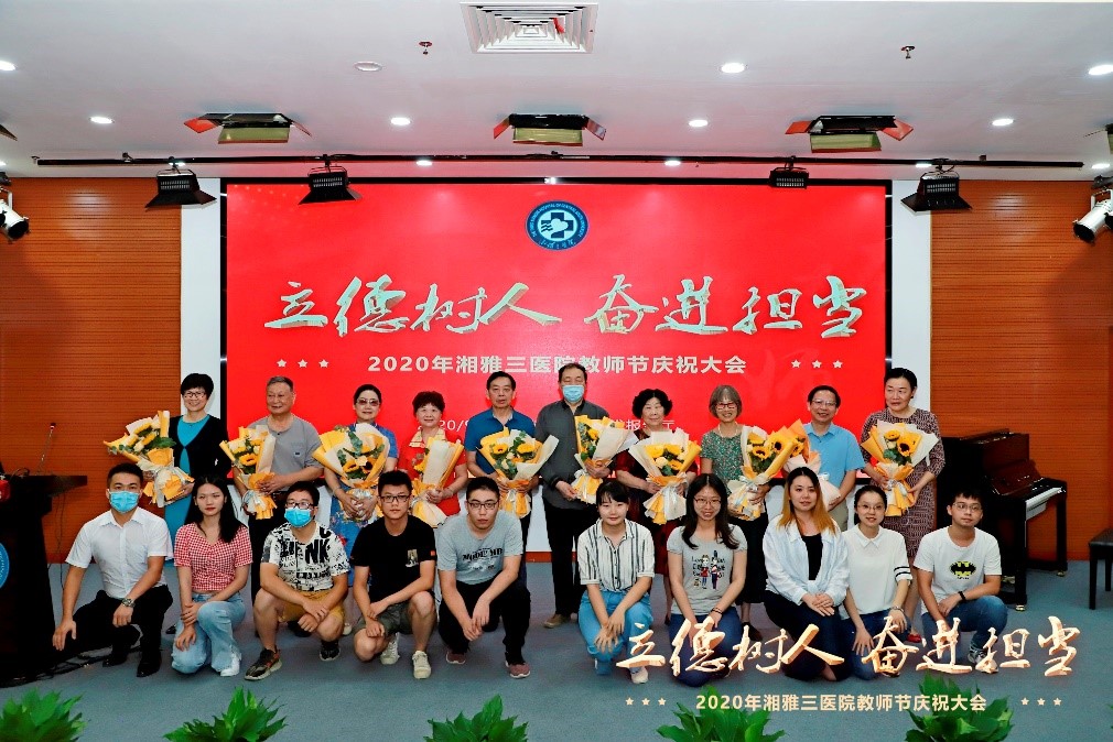 9月9日下午,中南大学湘雅三医院2020年教师节庆祝大会在外科楼2楼学术报告厅举行,大会主题为“立德树人,奋进担当”。医院党委书记何庆南、院长张国刚出席,在院全体院领导、老教授、督导专家代表、各教研室主任、相关职能部门负责人、援鄂医疗队教师代表、骨干青年教师代表和学生代表等100余人参加。党委委员、副院长吕奔主持大会。