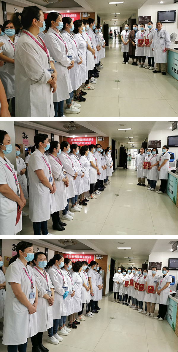 9月18日,健康管理中心利用晨会时间举办了一个简短的颁奖仪式,至此,为期半个月的“静脉采血无痛穿刺技术”竞赛终于落下帷幕。工会常务副主席熊晓云、第一党总支书记兼第一分工会主席罗海波受邀参加颁奖仪式并对活动给予了极大肯定。