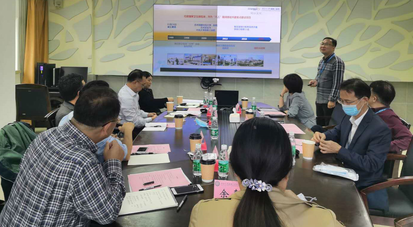 何庆南书记首先代表医院对各级领导的到来表示热烈欢迎。他向来访专家简要介绍了湘雅三医院的建院及发展历程,特别介绍了医院积极申报并获批省内首批互联网医院的筹建情况,以及医院作为新冠肺炎疫情期省内首家正式上线的“互联网+发热门诊”和“互联网+慢病门诊平台”助力疫情防控工作,为老百姓提供在线坐诊、复诊开药、APP支付药费、顺丰药品配送等“高效率、低风险、无接触”式的线上服务模式。