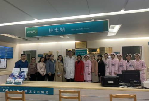 会后,武汉大学中南医院一行人在李小荣和护理部老师的陪同下参观了胃肠I科病房,对快速康复外科在临场护理路径中的实施有了更深一步的了解与认识。
