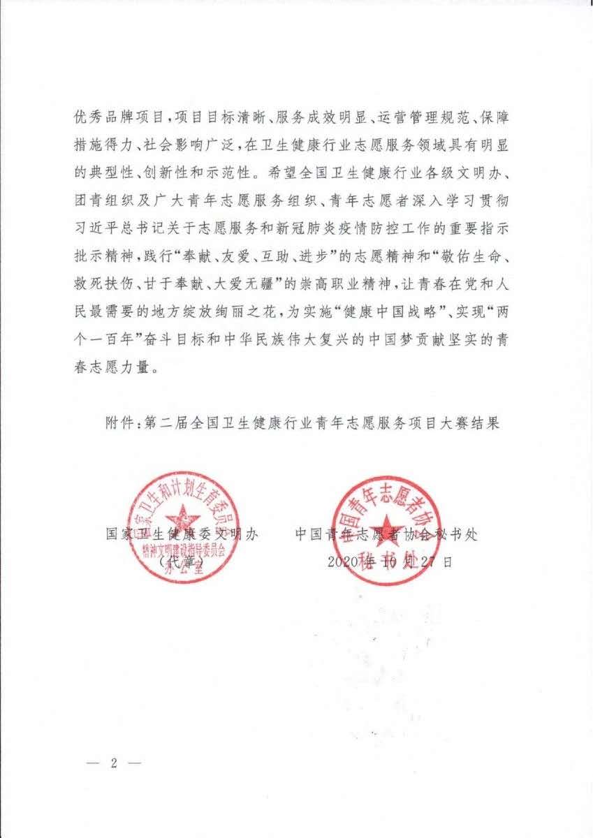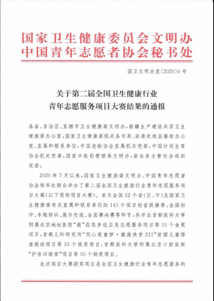 本届全国卫生健康行业青年志愿服务项目大赛以“汇聚卫生健康文明力量,绽放蓬勃青春志愿之花”为主题,旨在培育和弘扬卫生健康行业志愿服务文明力量。成功入围本届大赛决赛的145个参赛项目分别来自全国32个省(区、市)及国家卫生健康委有关直属和联系单位,均是经由院内推报、省级推荐、全国初评、展示交流等多个环节,层层选拔而来。我院此次获奖项目经院党委同意,由院团委(医务社工与志愿服务指导中心)牵头策划并联合医院各科室、部门志愿服务分队共同落实和报送,院团委(医务社工与志愿服务指导中心)负责人程海威作为项目负责人精心准备并以路演视频的形式完成答辩。
