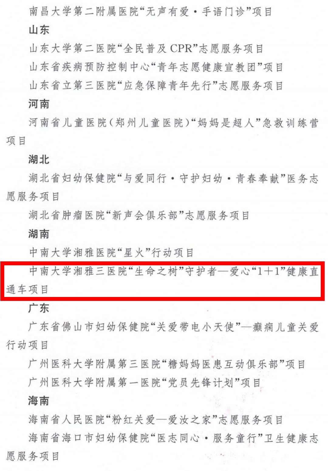 2020年7-10月,经第二届全国卫生健康行业青年志愿服务项目大赛近三个月的角逐,通过申报材料、视频路演等综合比拼,中南大学湘雅三医院“生命之树”守护者——爱心“1+1”健康直通车项目脱颖而出,荣获全国卫生健康行业青年志愿者服务项目大赛“铜奖”。本项目获奖,是今年医院继荣获全国抗击新冠青年志愿服务先进集体(健康管理中心“天使之光”志愿服务队)、湖南省疫情防控应急志愿服务项目大赛银奖(火线上的抗疫突击队,病房里的‘临时家属’——援鄂抗疫志愿服务项目)之后的又一斩获,体现了团中央、国家卫健委、中国青志协、团省委、省直团工委、省卫健委团委及中南大学团委等上级主管部门对医院工作的肯定,彰显了医院在志愿服务领域的示范作用与领先地位。