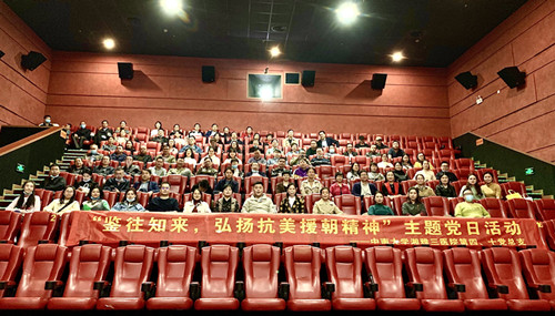 2020年11月5日晚,中南大学湘雅三医院第四、十党总支联合开展“鉴往知来,弘扬抗美援朝精神”主题党日活动,组织120余名党员在长沙河西王府井六楼卢米埃影城观看抗美援朝主题电影《金刚川》,进一步学习抗美援朝历史,弘扬抗美援朝精神。