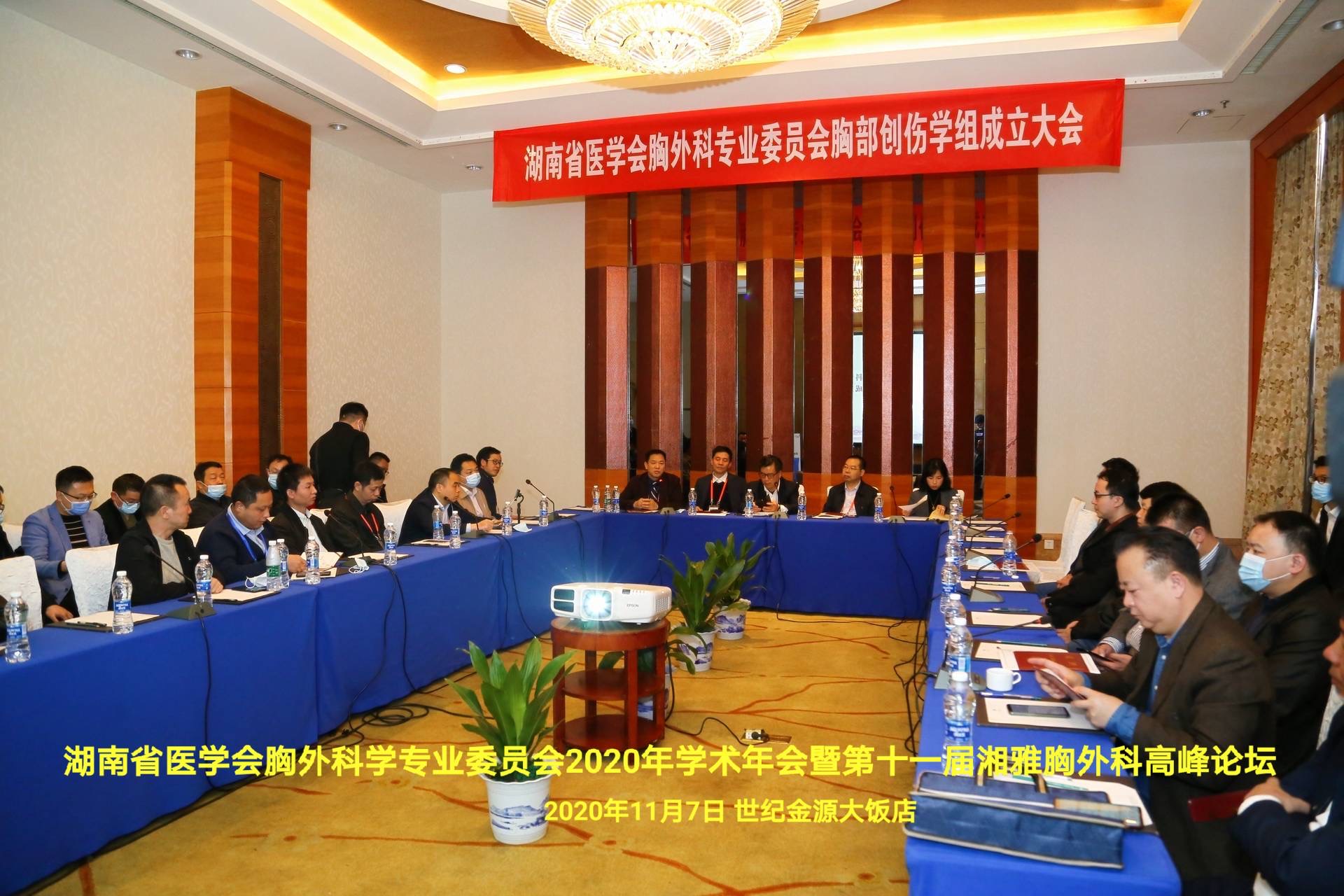 11月7日,由湖南省医学会胸外科专业委员会主办的湖南省医学会胸外专业委员会学术年会暨胸部创伤学组成立大会在长沙召开。省内外胸部创伤学界专家齐聚一堂,共同见证湖南省医学会胸外科学专业委员会胸部创伤学组成立。会议由湖南省医学会秘书长朱建华主持并宣布学组成立,中南大学湘雅三医院心胸外科主任金龙玉任首届学组组长,湘雅医院胸外科主任张春芳、湘雅二医院胸外科主任喻风雷出任顾问,湘雅医院胸外科张恒副主任医师、南华大学附属第一医院胸外科韦兵主任医师、邵阳市中心医院胸外科佘科霖主任医师、长沙市中心医院胸外科袁跃西主任医师出任副组长,湘雅三医院心胸外科马宇超主治医师出任秘书。