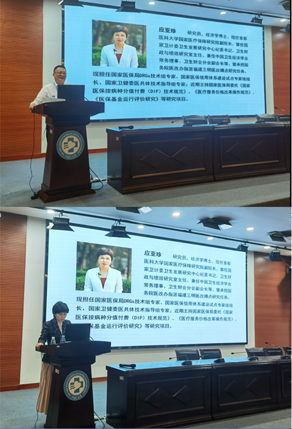 应亚珍教授围绕医保支付方式改革为主题介绍了我国医保改革背景,在《中共中央国务院关于深化医疗保障制度改革的意见》文件中明确了医保制度改革的指导思想、基本原则和改革发展目标,提出了“1+4+2”的改革框架。对基于大数据的按病种(DIP)分值付费,应教授进行了详细介绍,DIP付费依托于大数据,在病种分值确定、支付标准计算、结算细则制定中,始终关注“均值”、“分布”和“特例”,尊重医疗服务的复杂性、不确定性的内在规律,符合国情,能客观反映临床现实,是一种各方易理解、能接受的具有中国特色、时代特征的支付方式。她还向大家分析了当前医保形势和医保基金面临的支付风险,以及在医保支付方式改革和医疗服务价格改革中医院、科室、医生应如何实现医保精细化管理和经济管理,通过数据化和信息化手段,指标细化,减少浪费,规范质量、稳定质量,精确测量投入产出比,助力医保可持续发展,最终使患者满意、员工满意。