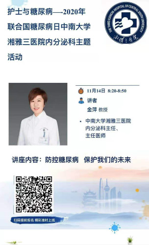 2020年11月14日是第14个联合国糖尿病日。14日上午,中南大学湘雅三医院内分泌科在内科楼3楼示教室及线上开展了大型健康宣教活动。