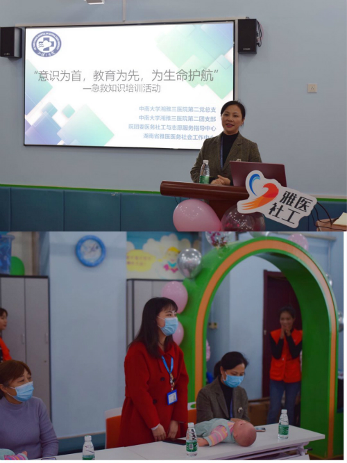 11月21日下午,由湘雅三医院团委立项资助,第二团支部携手湖南省雅医医务社会工作中心工作站承办的第七届团建活动创新项目——“意识为首,教育为先,为生命护航”之儿童急救知识培训活动在儿童保健中心活动室开展。第二党总支书记苏莉,院团委委员、专职干事戴萍萍受邀参加,第二团支部书记王思娃担任主讲老师。