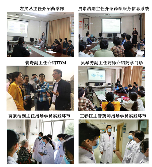 首先,左笑丛主任向各位学员介绍医院药学部的发展历史及学科特色。她表示目前药学部已经形成了以精准药学服务、慢病患者用药管理、药学服务全程信息化管理、药物临床评价研究为特色的学科,临床药师在推动医疗机构合理用药方面积累了丰富的经验,已成为医疗团队的核心成员。她希望学员们积极学习理论知识,并鼓励师生相互督促,做到教学相长,共同进步。在培训第一阶段,贾素洁副主任、吴翠芳副主任药师及裴奇副主任分别向学员展示了我科药学服务信息系统、咨询门诊实践及TDM开展相关情况,随后宋立莹主管药师带领学员参观了药品静脉配置中心、病室西药房、实验室等部门。为了提升学员的实战能力,贾素洁副主任和王春江主管药师指导学员进行处方审核,并指导学员如何在实践中积累合理用药经验。