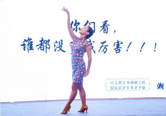 此次第三届全国临床营养科普大赛总决赛的现场竞争激烈,形式多样,精彩纷呈:沙画,小品,动画,古筝,快板,讲故事,相声,舞蹈等均纷纷上场。湘雅三医院潘曦联合李丹的手绘插画,以稳定的演讲发挥,获得三等奖。