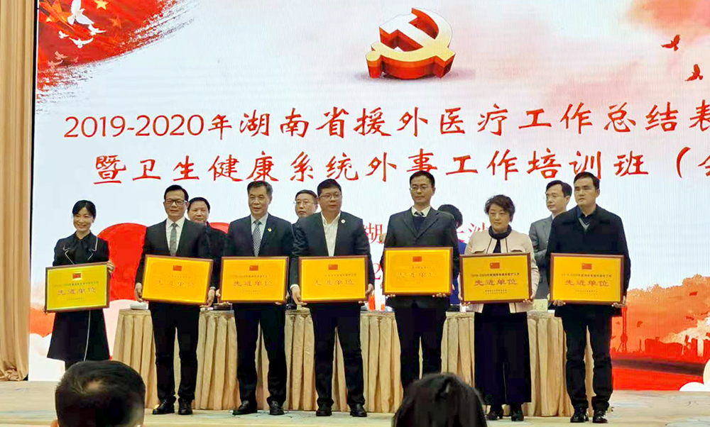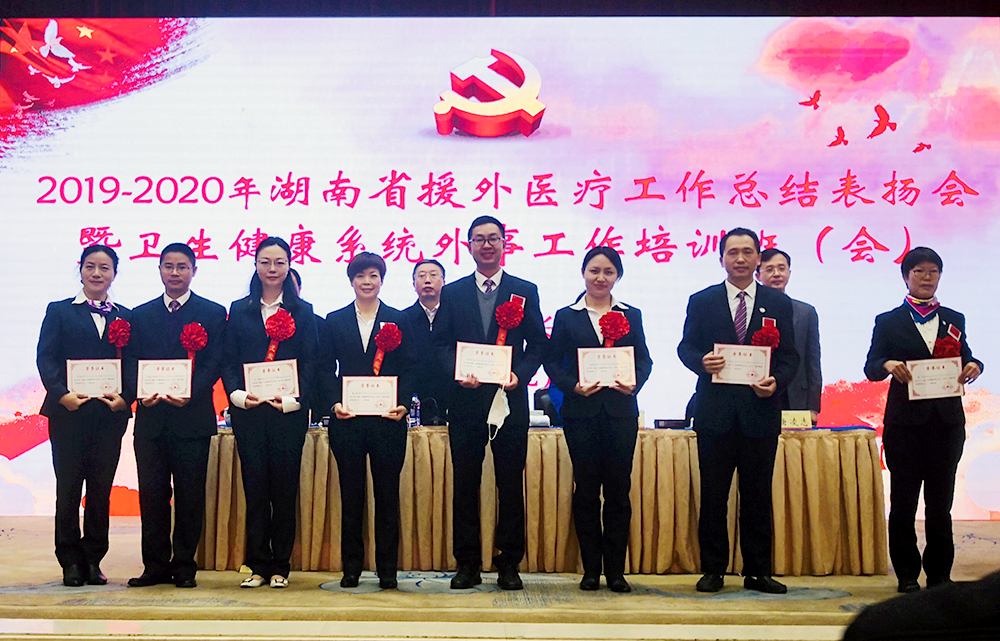 会上,湖南省卫健委宣布《关于表彰湖南省援外医疗工作先进集体和先进个人的决定》,对14个援外工作先进集体和30名先进个人进行了表彰。其中,中南大学湘雅三医院获“湖南省援外医疗工作先进集体”,医院超声科罗卓琼、眼科曹燕娜、儿科赵孟文三位同志获得“援外医疗工作先进个人”荣誉称号。