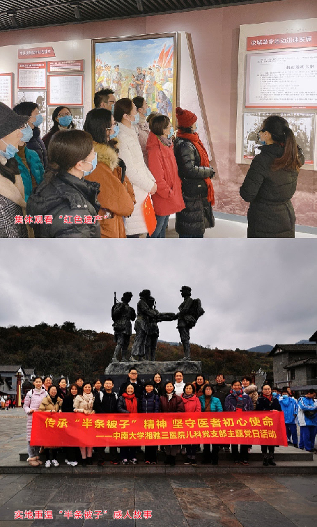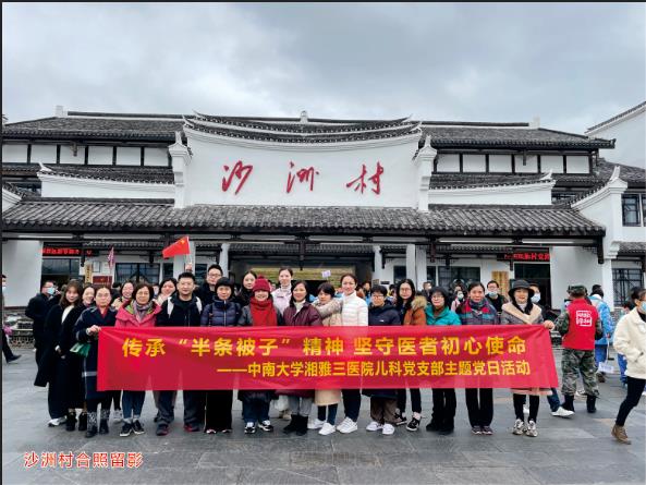 2020年12月5日,中南大学湘雅三医院党委委员、总会计师汤英,第二党总支书记苏莉、儿科党支部书记陈志衡、儿科主任杨明华及儿科党支部党员代表20余人赴郴州市汝城县文明瑶族乡沙洲村——红色经典故事“半床棉被”的诞生地,开展了以“传承半条被子精神,坚守医者初心使命”为主题的主题党日活动。