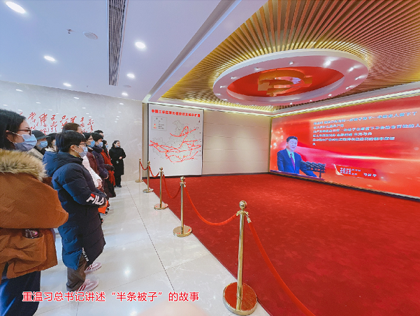 在沙洲村半条被子纪念馆大厅,党员们再次重温《习近平总书记在纪念红军长征胜利80周年大会上的讲话》,听总书记讲述“半条被子”的故事。“什么是共产党?共产党就是自己有一条被子,也要剪下半条给老百姓的人。”这句出自于徐解秀老人之口的话回响在我们的耳旁,久久不散。半条棉被不仅仅是女兵给当时徐解秀老人送去温暖的礼物,它承载的是共产党人与人民群众风雨同舟、血脉相通、生死与共的鱼水之情。