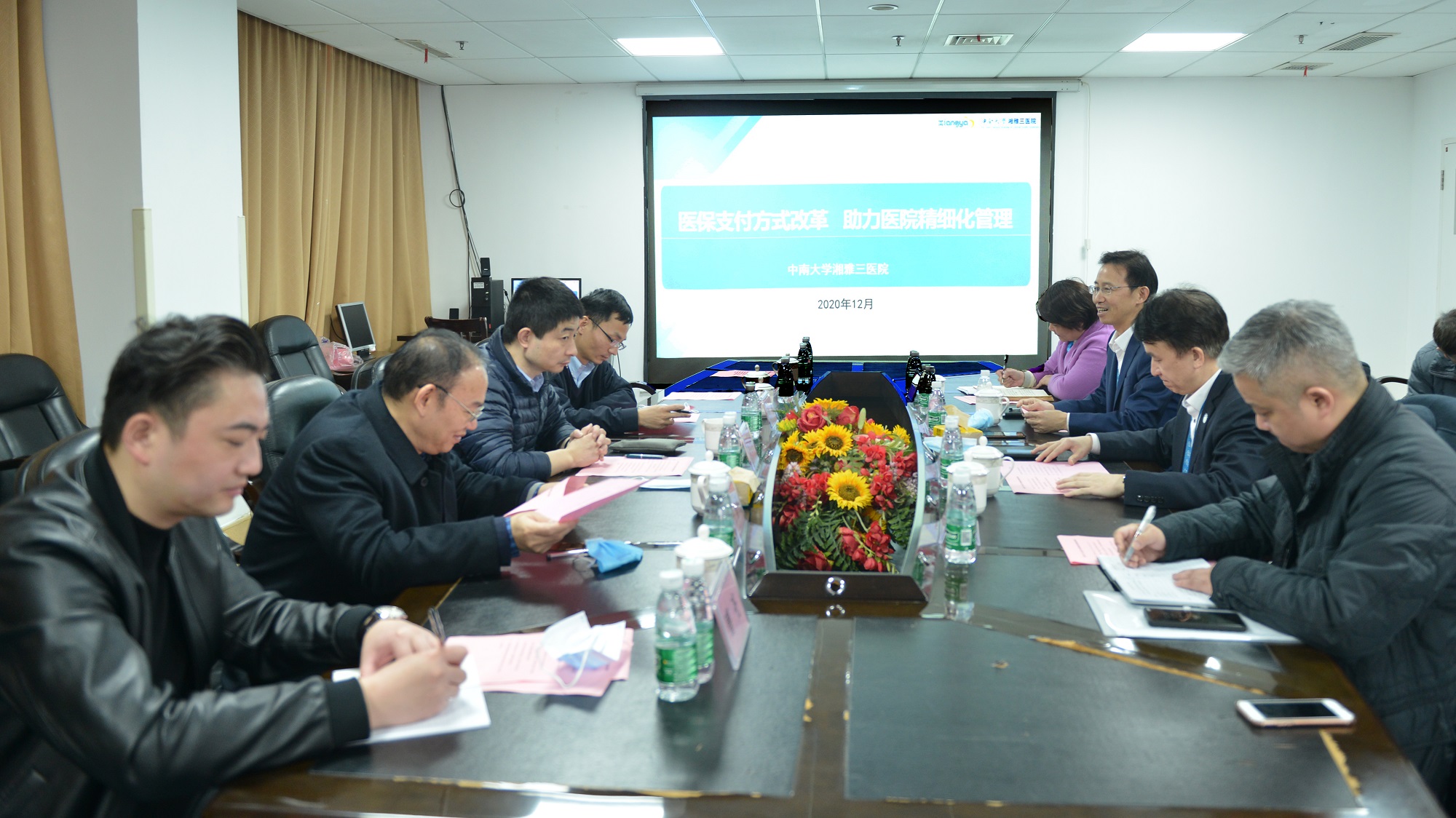 12月11日上午,国家医疗保障局医药服务管理司副司长黄心宇一行来到中南大学湘雅三医院,就“医保支付方式改革背景下,医院医药精细化管理”进行调研。湖南省医疗保障局党组成员、副局长伍国用,国家财政部社保司二级调研员沈维,湖南省医疗保障局医药服务管理处一级主任科员曹亮陪同,中南大学湘雅三医院党委书记何庆南,党委委员、副院长欧阳文及相关职能部门负责人共同出席调研座谈会。会议由欧阳文主持。